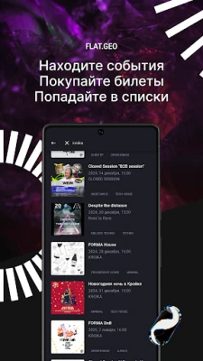 FLAT.AUDIO হল একটি অনন্য ইলেকট্রনিক সঙ্গীত প্ল্যাটফর্ম। এখানে ডিপ, টেকনো, হাউস সহ বিভিন্ন ঘরানার সঙ্গীত উপভোগ করুন। অনলাইন ও অফলাইনে গান শোনা, ম্যাপে পার্টি খোঁজা, পছন্দের শিল্পীদের অনুসরণ করা এবং ইভেন্টের টিকিট কেনার সুবিধা পান। আপনার নিজস্ব সঙ্গীত লাইব্রেরি তৈরি করুন।