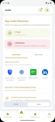GKavach DWM এর উদ্ভাবনী বৈশিষ্ট্যগুলি আপনার ডিজিটাল সুরক্ষাকে এক নতুন মাত্রা দেয়। এর রিয়েল-টাইম মনিটরিং সিস্টেম ডার্ক ওয়েব ফোরাম, ডেটা ডাম্প এবং গোপনীয় মার্কেটপ্লেসগুলিতে আপনার ডেটা উন্মোচনের প্রতিটি মুহূর্ত পর্যবেক্ষণ করে। আপনার ইমেল ঠিকানা কোনো নিরাপত্তা লঙ্ঘনে জড়িত হলে তাৎক্ষণিক ব্রীচ অ্যালার্ট পান এবং দ্রুত প্রতিরোধমূলক ব্যবস্থা নিন। PhisGuard প্রযুক্তির মাধ্যমে URL এবং QR কোড স্ক্যান করে ফিশিং ও ক্ষতিকারক হুমকি থেকে বাঁচুন। এছাড়াও, আপনার ইনস্টল করা অ্যাপগুলির অতীতের লঙ্ঘন এবং ঝুঁকিপূর্ণ অনুমতিগুলি স্ক্যান করে এটি সামগ্রিক সুরক্ষা নিশ্চিত করে। প্রতিটি লঙ্ঘনের বিশদ বিবরণ এবং কার্যকর পদক্ষেপের জন্য সুনির্দিষ্ট সুপারিশ সহ একটি ব্যবহারকারী-বান্ধব ড্যাশবোর্ড আপনার হাতে তুলে দেয়।