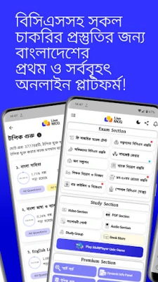 Live MCQ™-এর প্রতিটি বিভাগ আপনার প্রস্তুতির প্রতিটি স্তরকে স্পর্শ করে। 'পরীক্ষা সেকশন'-এ আপনি পাবেন দৈনিক লাইভ অ্যাসেসমেন্ট এবং প্রতিটির জন্য বিস্তারিত ব্যাখ্যাসহ ফলাফল, যা আপনার দুর্বলতা চিহ্নিত করতে ও সেগুলোকে শক্তিতে রূপান্তরিত করতে সহায়ক। 'স্টাডি সেকশন' সমৃদ্ধ হয়েছে অভিজ্ঞ শিক্ষকদের পরিচালিত লাইভ ও রেকর্ডেড ভিডিও ক্লাস, পিডিএফ ও অডিও ম্যাটেরিয়ালস দিয়ে। এখানে আপনি সহপাঠীদের সাথে স্টাডি গ্রুপে অংশ নিতে পারবেন, মাল্টি-প্লেয়ার কুইজ গেমে নিজেদের দক্ষতা যাচাই করে পুরস্কার জিততে পারবেন এবং গুরুত্বপূর্ণ বই সরাসরি বুক স্টোর থেকে হোম ডেলিভারি সুবিধাসহ সংগ্রহ করতে পারবেন। এছাড়া, প্রিমিয়াম সেকশন আপনার জন্য নিয়ে আসে স্মার্ট সার্চ, সর্বশেষ নিয়োগ তথ্যের ডাইনামিক প্যানেল এবং টপিক-ভিত্তিক গভীর প্রস্তুতির সুযোগ, যা আপনার শিক্ষাকে আরও ফলপ্রসূ করে তোলে।