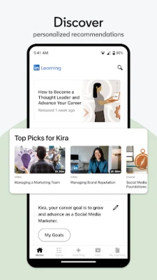 আপনার ব্যক্তিগত দক্ষতা এবং লক্ষ্য অনুযায়ী কন্টেন্ট সুপারিশের মাধ্যমে LinkedIn Learning আপনার শেখার পথকে করে তোলে সম্পূর্ণ নিজস্ব। আপনি নিজের পছন্দমতো শেখার পদ্ধতি বেছে নিতে পারেন – অনলাইন বা অফলাইনে, ছোট ভিডিও ক্লিপ, গভীর অডিও সেশন অথবা সম্পূর্ণ কোর্স হিসেবে। প্রতিদিন একটু একটু করে শেখার অভ্যাস গড়ে তুলুন 'Daily' ফিচারের সাহায্যে, আর প্রতি সপ্তাহে যুক্ত হওয়া নতুন কোর্সগুলির মাধ্যমে শিল্প জগতের সর্বশেষ প্রবণতাগুলির সাথে থাকুন আপ-টু-ডেট। ইংরেজি, জার্মান, ফরাসি, স্প্যানিশ সহ বহু আন্তর্জাতিক ভাষায় শেখার সুযোগ আপনার জন্য উন্মুক্ত।