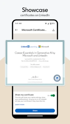 শেখার প্রতিটি ধাপেই LinkedIn Learning আপনাকে পেশাদার শংসাপত্র অর্জনে এবং আপনার পেশাদার পোর্টফোলিওকে সমৃদ্ধ করতে সাহায্য করে। অর্জিত এই শংসাপত্রগুলি সহজেই আপনার LinkedIn প্রোফাইলে যোগ করে আপনার দক্ষতা এবং অভিজ্ঞতা সবার সামনে তুলে ধরুন। LinkedIn Learning এর মাধ্যমে আপনি জ্ঞানের এক বিশাল ভান্ডারে প্রবেশাধিকার পান; একটি সাবস্ক্রিপশনের মাধ্যমে আমাদের সম্পূর্ণ কোর্স লাইব্রেরি এবং LinkedIn প্রিমিয়ামের উন্নত নেটওয়ার্কিং সরঞ্জামগুলির সুবিধা উপভোগ করুন, যা আপনার পেশাদার বৃদ্ধিকে আরও ত্বরান্বিত করবে। LinkedIn তার সকল ব্যবহারকারীর জন্য সর্বোচ্চ অ্যাক্সেসযোগ্যতা নিশ্চিত করতে অঙ্গীকারবদ্ধ।