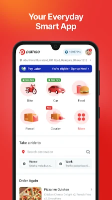 "পাঠাও রাইড" এর মাধ্যমে রাইড পাওয়া অত্যন্ত সহজ। আপনি কেবল আপনার বর্তমান অবস্থান এবং গন্তব্য নির্বাচন করুন। তাৎক্ষণিকভাবে আপনি আপনার যাত্রার আনুমানিক ভাড়াও জেনে নিতে পারবেন। একবার অনুরোধ পাঠালে, আপনার নিকটস্থ একজন "পাঠাও" রাইডার দ্রুত আপনাকে পিক আপ করতে প্রস্তুত থাকবে, যা আপনার যাত্রাকে করবে আরও মসৃণ ও স্বাচ্ছন্দ্যময়।